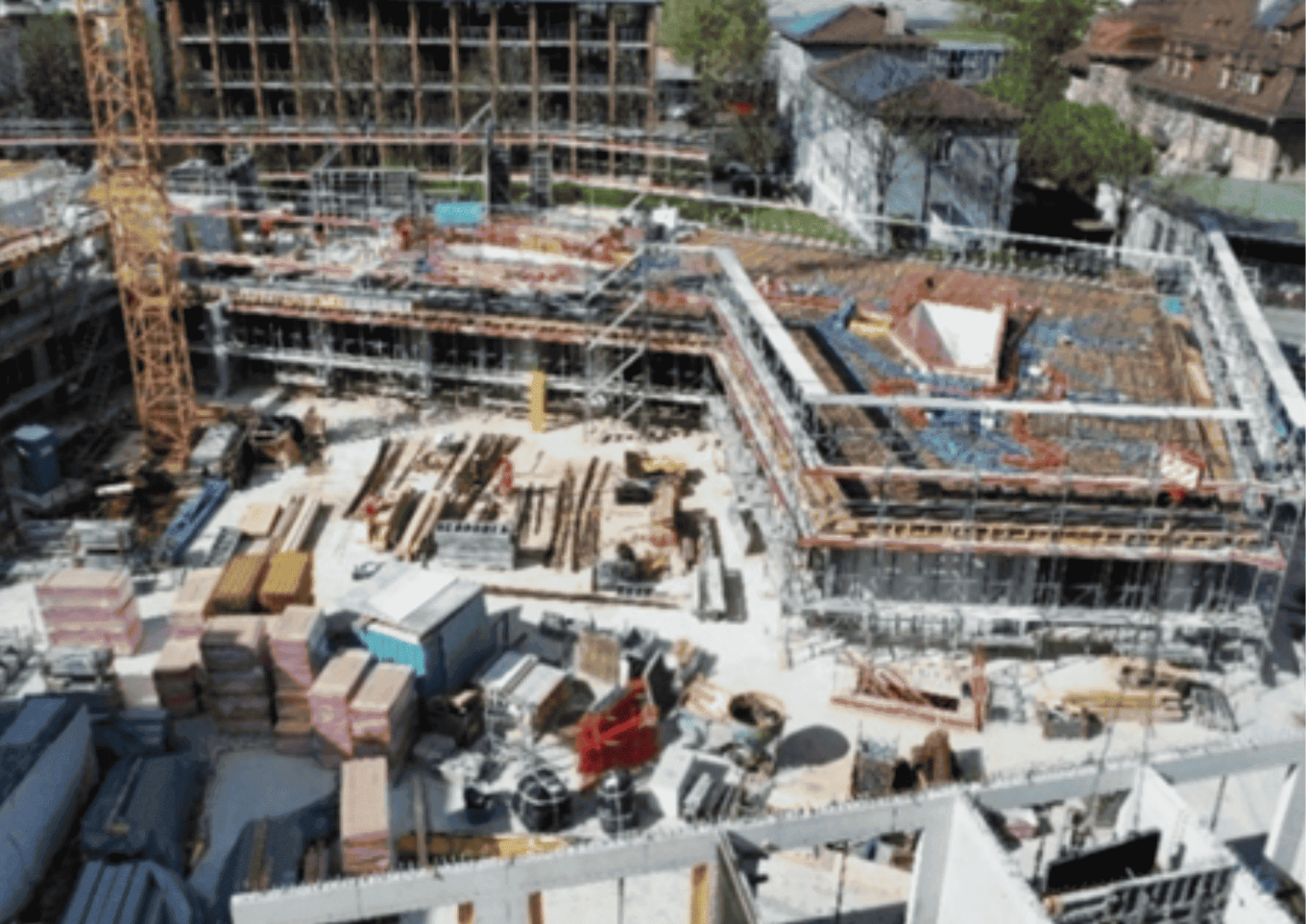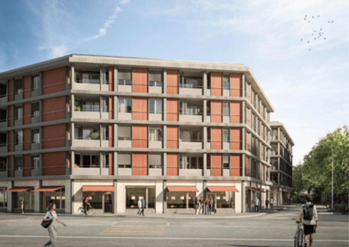 Construction de deux immeubles avec 105 appartements, surface commerciale et trois cours intérieures.