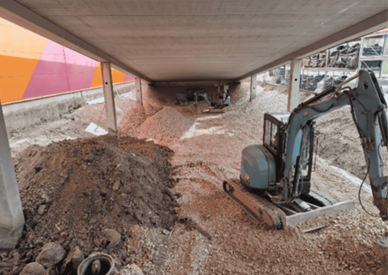 la pose d’une nouvelle canalisation, ainsi que la mise en place d’une natte de bentonite pour assurer l’étanchéité.