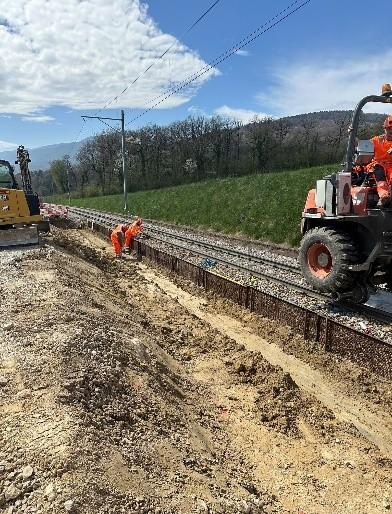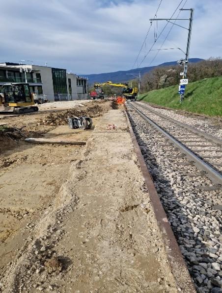 Ligne Nyon-St-Cergue : Cosortium Piasio - De Luca Renouvellement de la Halte de la Joy à Genolier Maître de l'ouvrageChemin de fer Nyon Saint-Cergue – Morez SAChemin de Bourgogne 161260 Nyon Direction des travaux | ArchitecteGSTR Grisoni Sersa Total RailRue du Pré Salomon 181242 Savigny CoûtsCHF 919'000.00 Réalisation2025 Travaux spécifiques Exécution de drainages, de tuyaux de transport et de chambres de contrôles Exécution de bassins de rétention (DN800 à 1’500) Travaux de démolition/construction de parapets – poutres et socles de PI Exécution d’éléments de stabilisation de banquettes (type Rüglei) Démolition/construction de caniveaux à câbles Quantités Terrassement : 597 m3 Bordure quai : 75 ml Mur de soutènement : 20 ml Canalisations : 200 ml Enrobé : 730 to SiègeDe Luca SARue des Prés 332503 Biel/BienneTel. 032 328 70 80info@deluca.ch Succursale MoutierDe Luca SARue des Oeuches2740 MoutierTel. 032 293 10 92moutier@deluca.ch DépôtDe Luca SARue du Lindenhof 222504 Biel/BienneTel. 032 328 70 80depot@deluca.ch Recyclage MatériauxTribel SARue des Oeuches 92740 MoutierTel. 032 493 10 92tribel@deluca.ch EtanchéitéDe Luca Isolations SARue du Lindenhof 222504 Biel/BienneTel. 032 328 70 80depot@deluca.ch